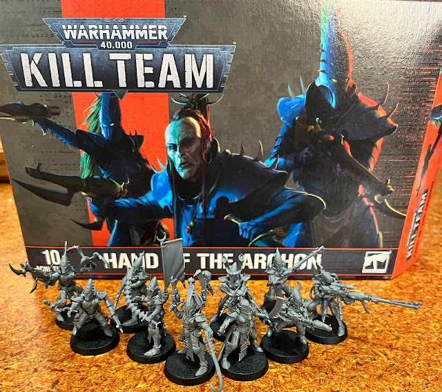 As you all know, I have been playing a lot of Kill Team with my local club; True Crit Gaming Guild. Normally, I play some faction of Eldar as they were my first miniatures and faction. I have a Craftworld, Harlequin, and Corsair Kill Team all ready. Therefore, when my FLGS got in the Hand of the Archon box I went ahead and picked it up. I figured I might as well be "The Space Elf" guy in our group.